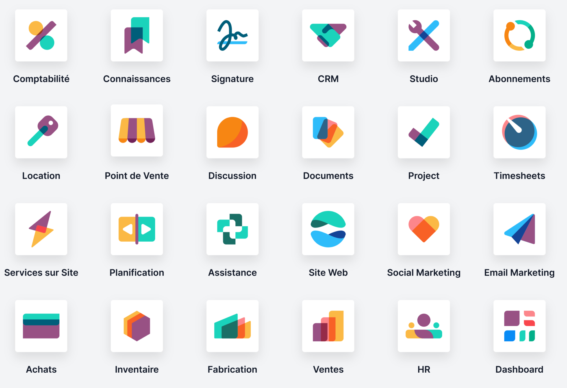 Odoo propose plus de 80 applications intégrées couvrant l’ensemble des besoins d’une entreprise